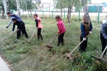 Мы в мешки сгребаем осень.Ребята приложили все усилия для того, чтобы территория вокруг родной школы засияла чистотой. Работа кипела, все с 1 по 9-е классы ребята вышли на средник, вооружившись метлами, совками, мешками и граблями. У каждого класса был свой объект уборки территории. Каждый работал на совесть, так что очень скоро мусора не осталось ни на территории школы, ни вокруг неё.