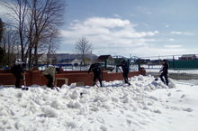 Сегодня учащиеся вышли на средник. Ребята вместе с классными руководителями рыхлили снег на школьном дворе.