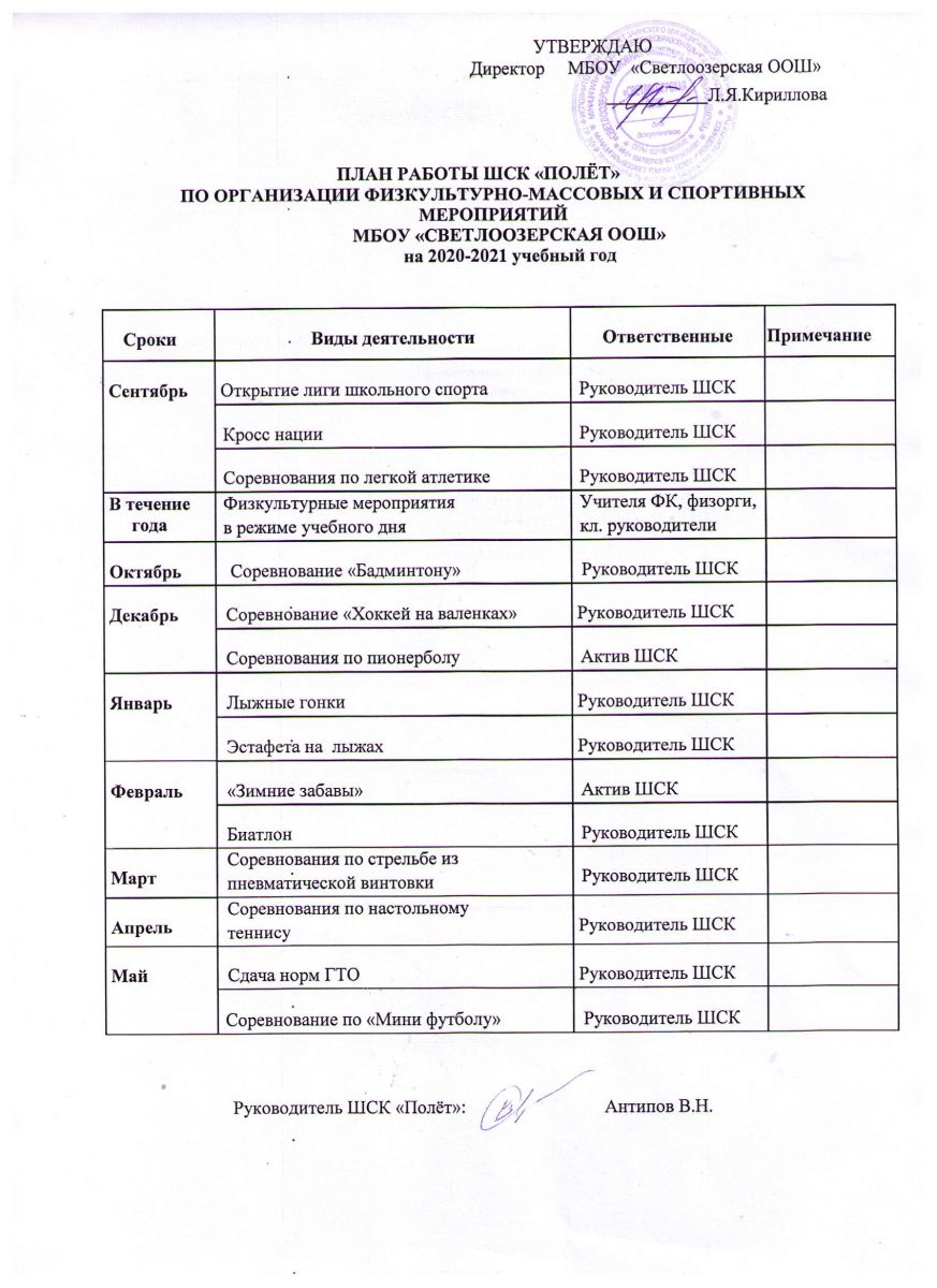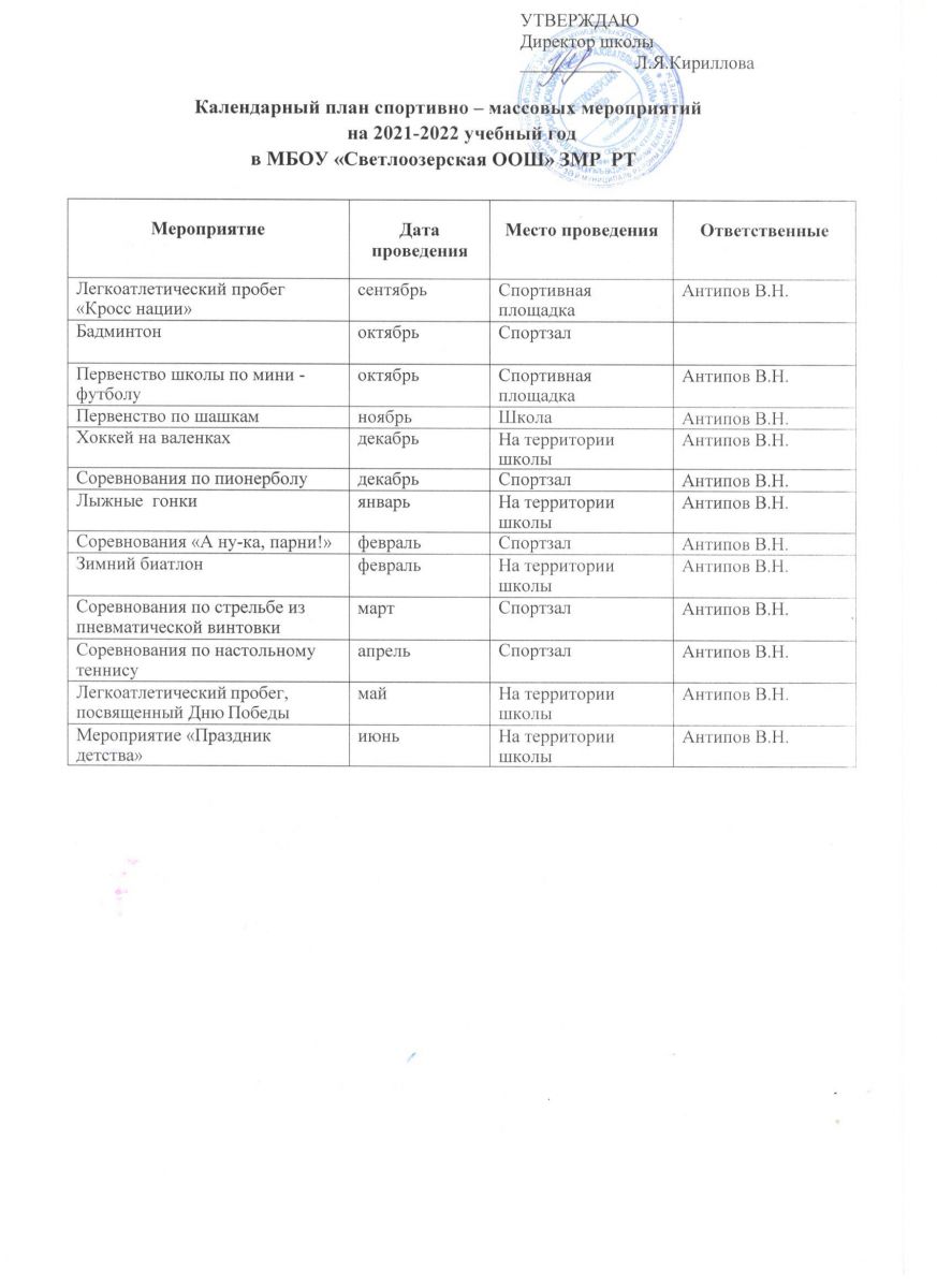 Календарный план спортивно-массовых мероприятий на 2021-2022 уч.год