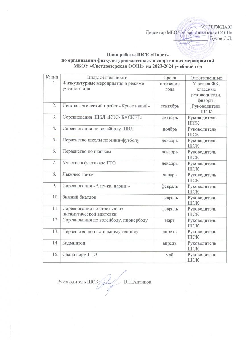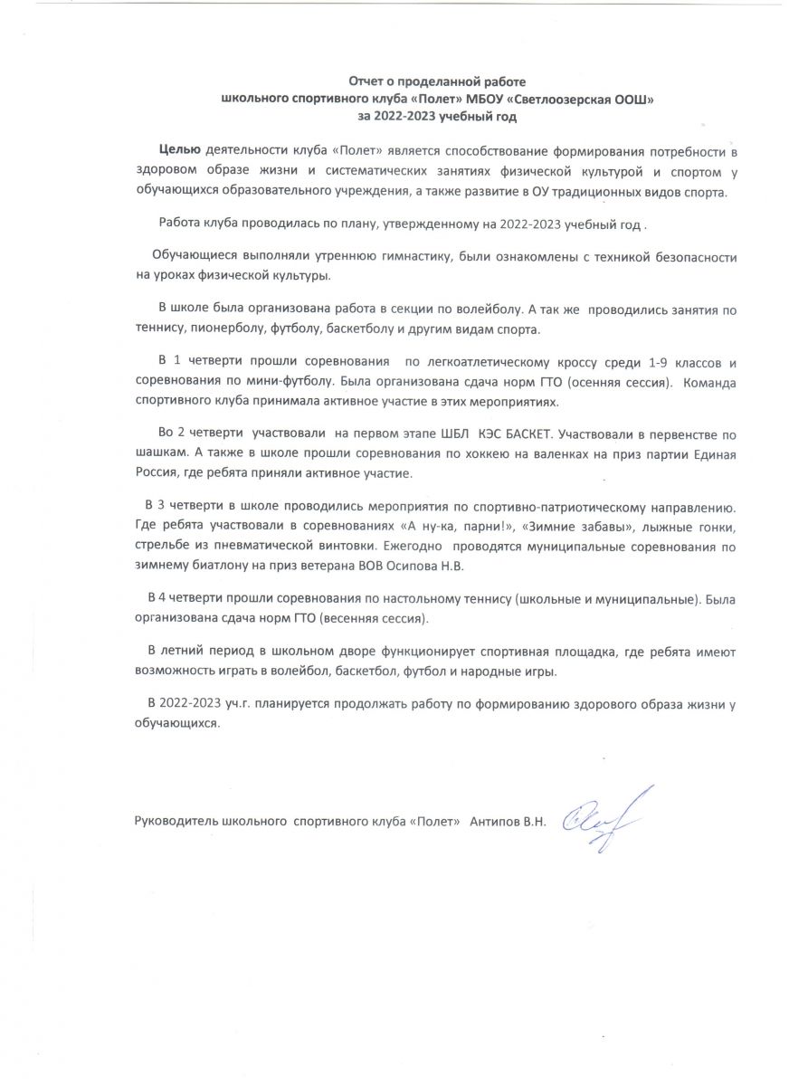 Отчет о работе ШСК Полет за 2022-2023 уч.год