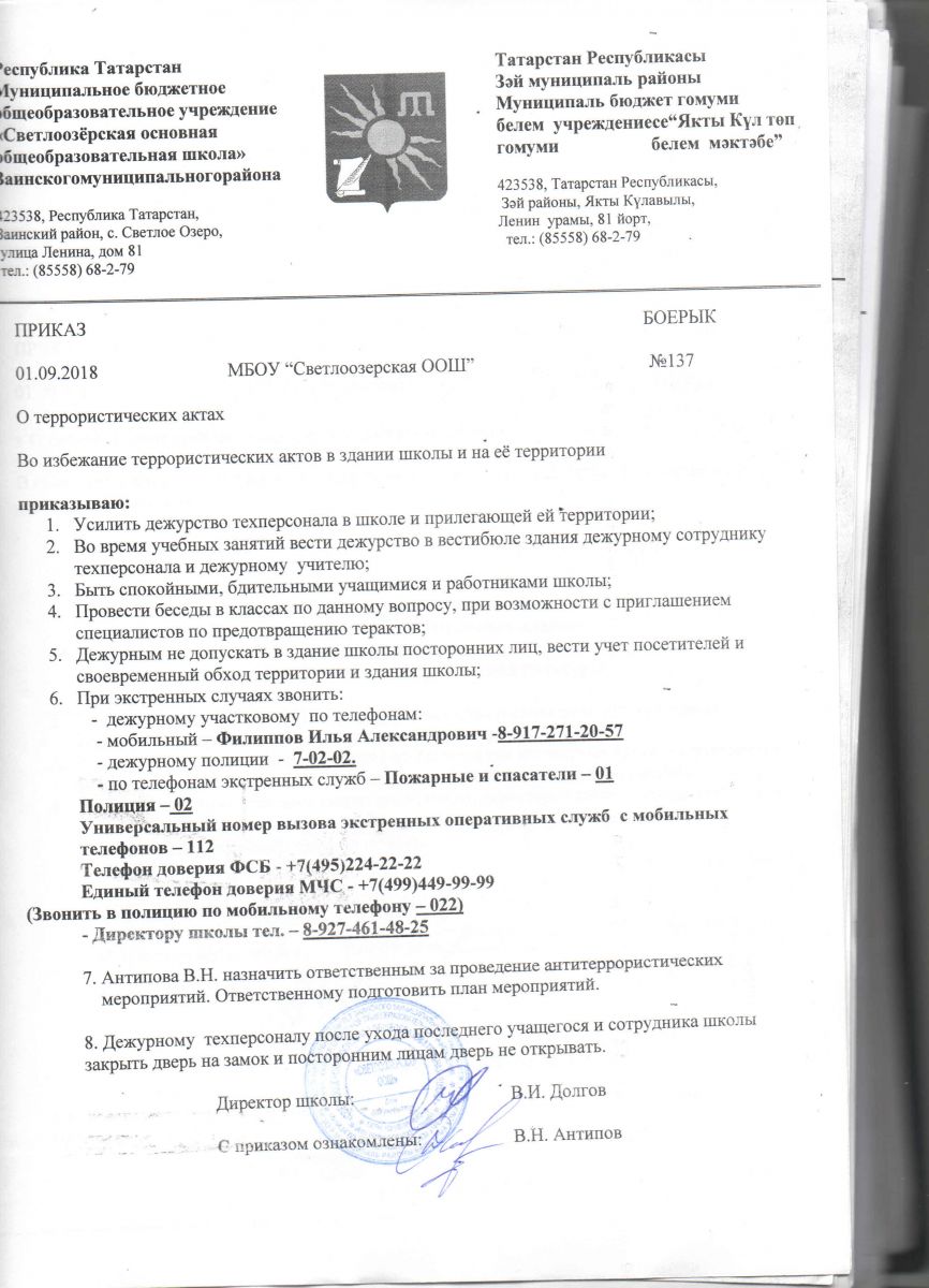 Приказ по профилактике терроризму 2018-2019 учебный год