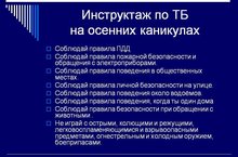 Инструктаж на осенние каникулы 29.10.2016