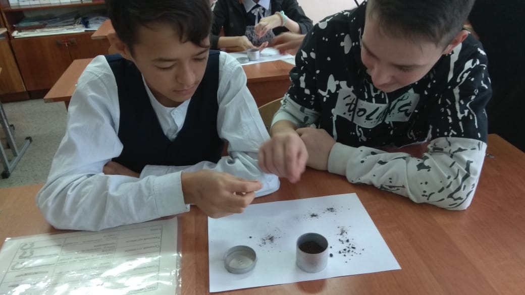 Марина Юрьевна представила тему «Определение гранулометрического состава почвы», рассказала о морфологии почв, о почвенном профиле, о том, что для Заинска характерны серые лесные почвы, в которых преобладает тяжелая суглинистая почва. Дала понятие о гранулометрическом составе почвы (весовое соотношение в почве частиц разного размера) и подробно объяснила практическую методику различных методов определения гранулометрического состава почв: полевого (сухого, мокрого) и лабораторного (метод просеивания, метод «пипетки» по Н.А. Качинскому, метод «отмучивания» по А.Н. Сабанину). На практике дети научились сухому методу определения гранулометрического состава на ощупь и мокрому способу определения механического состава почвы.