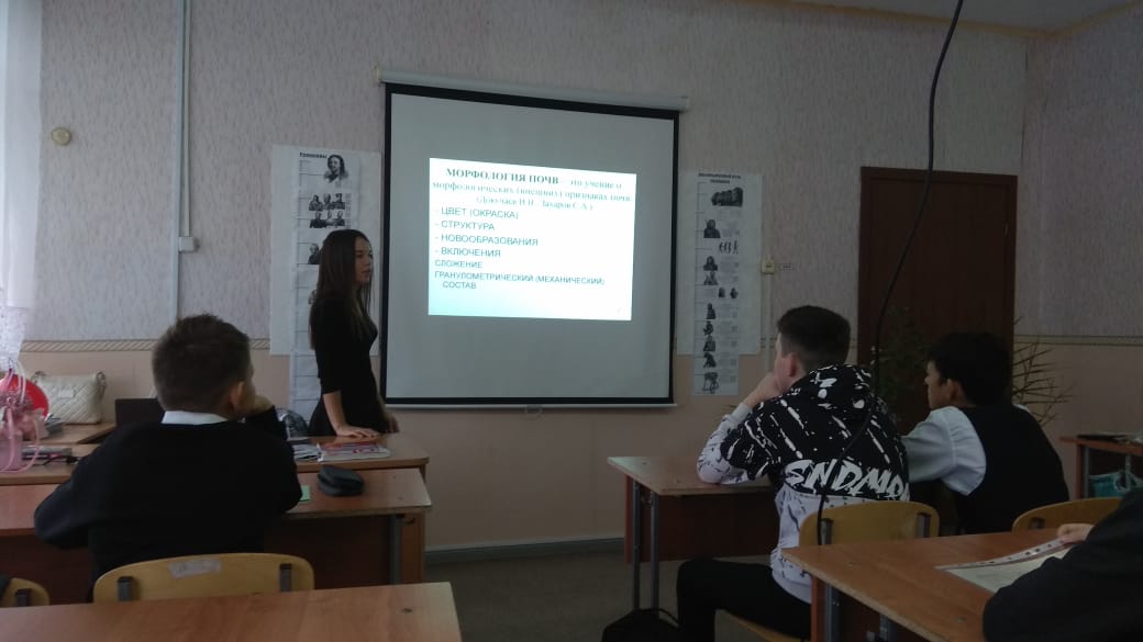 Занятие с обучающимися аграрного 7 класса в очном формате урок-практикум провели представители двух вузов: Ирина Александровна Конакова, ассистент кафедры биологии, генетики и разведения животных КГАВМ, кандидат ветеринарных наук и представитель Казанского государственного аграрного университета, Михайлова Марина Юрьевна, доцент кафедры агрохимии и почвоведения Института агробиотехнологии и землепользования.
