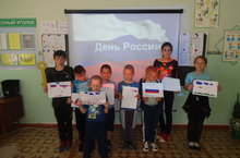Далее была проведена викторина «Славим Россию», различные игровые конкурсы, а также конкурс рисунков, посвящённый Дню России. Отличившиеся получили небольшие призы.
