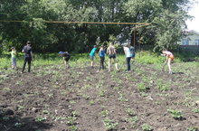 После завтрака решили прополоть картошку. Взрослые пололи, младшие поливали.