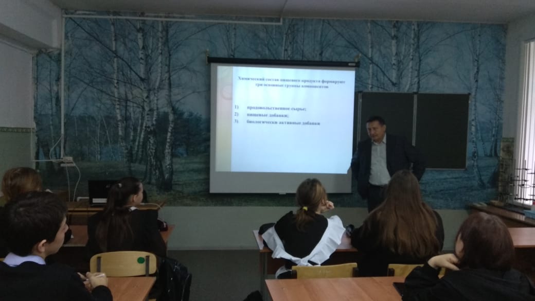 Тахир Мунавирович в ходе своей лекции на тему «Гигиенические требования, предъявляемые к пищевой продукции РФ», смог в доступной для детей форме преподнести материал о химическом составе пищевого продукта, который формируют три группы компонентов: продовольственное сырье, пищевые добавки, биологически активные добавки. Рассказал, что конкретно относится к показателям пищевой и биологической ценности, также раскрыл тему о качестве и безопасности пищевой продукции.