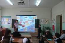 16 апреля в рамках проведения мероприятий по формированию культуры здорового питания в 7 классе был проведён классный час на тему «Здоровое питание и здоровый образ жизни», рассказ учителя сопровождался красочной презентацией. Основной целью мероприятия было создать условия для формирования правильного отношения к своему здоровью через понятие здорового питания, ознакомить детей с вредными для человека продуктами (с колой, жвачками, чипсами и т.д.), а также с правилами здорового питания. Дети узнали, что неправильное питание сокращает жизнь людей в 2-3 раза – и эта недолгая жизнь становится постоянной борьбой с разными болезнями. Из всех правил питания детей удивило особенно то, где говорилось о несовместимости некоторых продуктов питания: суть в том, что продукты с высоким содержанием белков и жиров (мясо, рыба, яйца, бобовые, орехи, семечки) не должны употребляться одновременно с крахмалосодержащими продуктами и углеводами (хлеб, мучные изделия, зерновые, картофель, сахар). Ведь даже в школьном рационе мясо подаётся с отварными макаронами, котлеты с картошкой и обязательно кусок хлеба. В конце классного часа выяснили состав кока-колы, чипсов и поговорили об их вредном влиянии на организм человека.