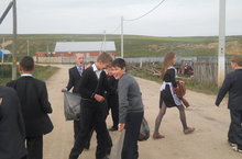 16 сентября была проведена акция «Бунт». Вначале с 5 и 6 классами была беседа о том, что село, где живут люди, должно быть чистым. После беседы дети вышли на улицы села, где каждому классу был распределен участок. Ребята работали с энтузиазмом, в целом убрали территорию в размере 2000 метров.