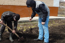 Посадили саженцы (липа, рябина, сосна, береза) на территории школы.