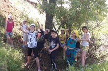 по карте, подсказкам, стрелкам клад . «Клад»-это банки,где находятся сладкие призы (жевательные резинки,шоколадки) по количеству детей. Отряд «Улыбка» нашла свой клад на одном из оврагов, по улице Ленина. Отряд «Лидеры» обнаружила свой клад на территории старой школы, где заранее были спрятаны внутри посадки обманка-клад и сам «клад».Сколько восхищения и радости было у детей,когда все клады с призами были найдены!
