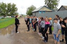 3. В магазинах «Ягодка» и «У Вовы», а также в школе провели акцию: «Флеш-моб «Будь здоров! Танцуй!» Ребята танцевали в огороде, когда пололи картофель и поливали цветы, когда играли на игровой площадке, в спортзале, в столовой, в коридорах школы. Так как флеш-моб подразумевает танец парами, втроем, группой, ребята находили себе партнеров среди других отрядов. Номера в основном получились спортивные и юморные.