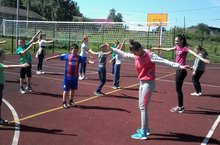 ü После обеда провели спортивную эстафету. Учащиеся разделились на 2 команды. Были следующие виды: