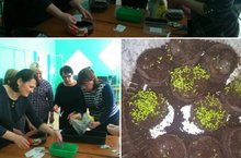 Учителя МБОУ "Савалеевская СОШ" готовят рассаду для высадки в теплицу.