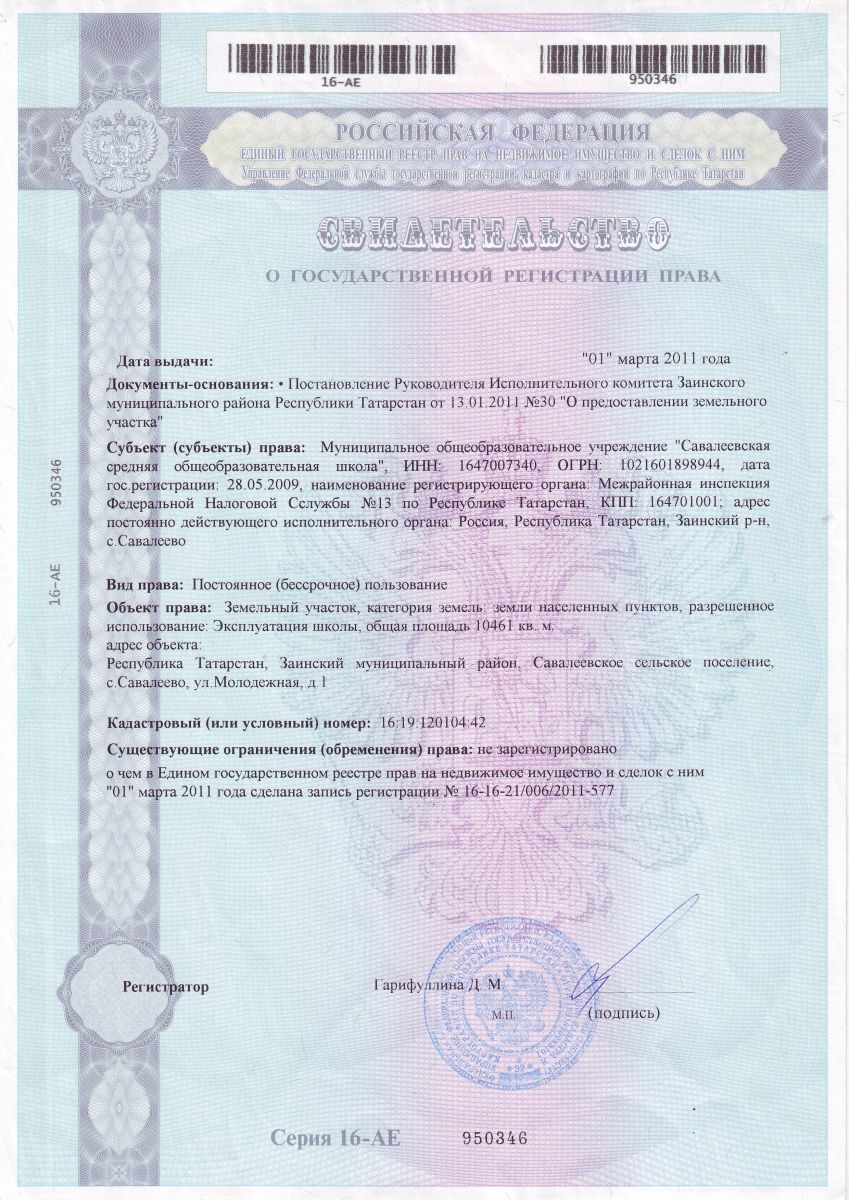 Адрес: Заинский муниципальный район, с. Савалеево, ул. Молодежная, д. 1