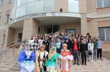 Ребят встретили студенты НФ КИУ - участники «Театра мод им. К. Рональдо» и представили костюмы из коллекции с национальными мотивами.