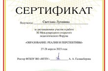 Классный руководитель психолого-педагогического класса приняла участие в XI Международном открытом педагогическом форуме "Образование: Реаалии и Перспективы"