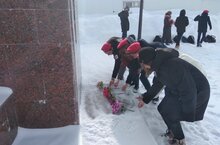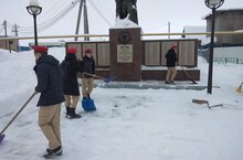 В рамках месячника военно-патриотического воспитания отряд юнармейцев вышли на очистку снега возле памятника воину-освободителю.