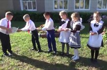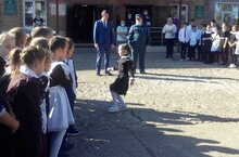 Право разрезать ленту было предоставлено ученикам школы №1.