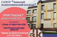 ГАПОУ "Заинский политехнический колледж" приглашает абитуриентов. Прием на базе 9 классов с 01.06.2020 г.