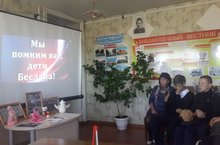 11 сентября в 13.50, для учащихся 8 «А» класса в библиотеке филиала №1 прошел урок памяти «Это забыть нельзя...», посвященное трагическим событиям Беслана, погибшим детям, их учителям, наставникам и всем тем, кто до последней минуты сердцем прикрывал и разделял тяжесть выпавших на их долю испытаний.