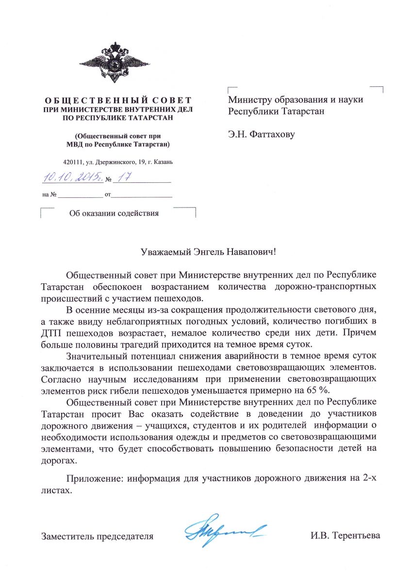 Письмо от Общественного совета при Министерстве внутренних дел по РТ о правилах дорожного движения