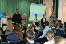 В рамках месячника по подготовке и организации «Дня защиты детей» в параллелях 5-х классов прошло мероприятие «Знай и соблюдай правила дорожного движения», в котором в качестве председателя жюри выступил инспектор ГИБДД Е.М. Демеев. Евгений Михайлович не только проверил знания ребят, но и напомнил правила безопасного поведения на дорогах.