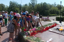 Ребята пришкольного лагеря почтили память минутой молчания и возложением цветов к вечному огню.