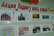 За 70 дней до празднования 70-й годовщины Победы в Великой Отечественной войне в школе был дан старт акции «Подвигу жить в веках!». В рамках этой акции пройдут классные часы, посвященные основных вехам войны. Каждый классный час будет освещаться на школьном экране. Вы можете ознакомиться с планом акции...