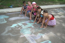 Сразу после завтрака художники от каждого отряда вышли на дорожки рисовать на асфальте безопасную дорогу. А весь отряд в это время готовил концертные номера. После как подвели итоги конкурса рисунков. Все собрались в актовом зале на концерт. Дети удивляли своими талантами в песнях, танцах, сценках.