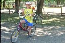 Формируя навыки сознательного отношения к соблюдению правил безопасного движения на велосипедах в нашем пришкольном лагере прошли соревнования «Юный велосипедист». Дети соревновались в знании правил дорожного движения, дорожных знаков, правила вождения велосипеда, поступки в разных жизненных ситуациях.С увлечением прошла игра – викторина «Совершенно секретно». Но больше всего ребят увлекла игра по станциям «Кладоискатели». Лучших результатов достигли участники 4 и 6 отрядов.