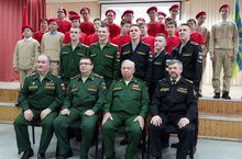 В рамках Всероссийской акции "Есть такая профессия - Родину защищать!" юнармейцы школы под руководством педагога-организатора ОБЖ Магдиевым Р.Р. приняли участие в встрече с выпускниками школы №6, а ныне курсантами военных ВУЗов России - Маркелов Ильдар, студент 3 курса военно-морской академии г.Санкт-Петербург; Хисматуллин Александр, студент 2 курса военного института физической культуры МО РФ г.Санкт-Петербург; Юшков Дмитрий, студент 1 курса военно-космической академии г.Санкт-Петербург; Кузьмины Данил и Дмитрий, студенты 1 курса военно-морской академии г.Санкт-Петербург. На встрече присутствовали военный комиссар, ветераны военной службы, юнармейцы школ.