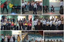 Сегодня был один из самых насыщенных дней осенних каникул. Первоклашки впервые дебютировали на сцене в рамках праздника «Здравствуй, осень золотая!» для 1-2 классов. По многочисленным просьбам в рамках традиционного школьного мероприятия «Капустник» для 7-8 классов состоялась игра КВН, ребята пошутили про школу и про осень. А вот шестиклассники, которые только вчера были в Казани на спектакле в ТЮЗ, сегодня покоряли воды бассейна.