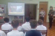 Сегодня ученики 8 классов посетили Центральную городскую библиотеку, где прослушали лекционную тематическую беседу, посвященную 75 годовщине битвы под Москвой.