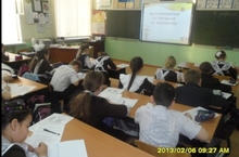 В 4-х классах 6.02.13 прошло республиканское тестирование по математике и татарскому языку. В каждом классе были наблюдатели, являющиеся родителями другого класса учащихся. Ребята отвечали на трудные вопросы по татарскому языку и выполняли задания по математике. 7.02.13 пройдёт тестирование по русскому языку и окружающему миру.