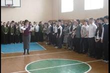 26 февраля в ЗСОШ №3 в рамках клуба выходного дня прошел смотр-парад кадетов. После смотра провели конкурс, посвящённый Дню Защитника Отечества. Организатором этого мероприятия был классный руководитель кадетского класса Константинова Татьяна Павловна. В этот день мы поздравили всех мальчиков своего класса стихами, песнями. Провели интересные конкурсы. В первый конкурс назывался «У бойца выходной – пуговицы в ряд», где мальчики показали как они умеют пришивать пуговицы. Во втором конкурсе при помощи ложки перенести воду из 1-го сосуда в другой. Кто скорее и точнее сделает это? В следующем конкурсе мальчики проверяли свою меткость для этого они лист бумаги должны смять одной рукой в шар и собственным снарядом попасть в цель. Был конкурс «Телефонисты», передать скороговорку на ухо друг другу, последний получив телефонограмму должен встать и громко произнести скороговорку. Пятый конкурс: нарисовать портрет диверсанта. Также игроки отгадывали загадки и вспоминали пословицы. В конце жюри подвели итоги и в виде приза вручили поздравительные открытки. Мероприятие всем очень понравилось.