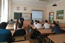Руководитель заинского центра молодежных и студенческих формирований по охране общественного порядка «Форпост» Алексей Алексеев и Баженова Е.Ф. с учащимися старших классов провели беседу "Безопасность социальных сетей. Деструктурные группы".