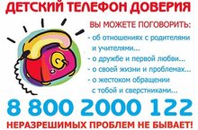 Детский телефон доверия 8-800-2000-122 создан для оказания психологической помощи детям, подросткам и их родителям в трудных жизненных ситуациях. Звонок бесплатный и анонимный.