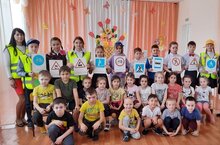 Агитбригада ЮИД школы пришла в детский сад "Рябинка". Школьники напомнили малышам правила дорожного движения, показали миниатюры с шуточными персонажами.