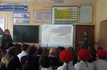Интересной, впечатляющей оказалась сегодня встреча с выпускником школы, выпускником военно- космической академии Динмухаметовым Э. Офицер рассказал школьникам о своей службе, учебе в ВУЗе. Нацелил мальчиков на поступление в военные учебные заведения. Призвал не бояться армии. Армия дисциплинирует, способствует становлению мужчины. Парень, отслуживший в армии, вызывает уважение.