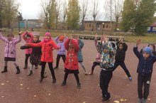 В первый день каникул первоклассники собрались на площадке принять участие в игровой программе "Игровой серпантин". После спортивной эстафеты, соревнований на тренажерах класным руководителем был организован танцевальный флеш-моб "Будь здоровым- танцуй!"