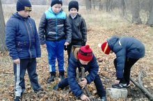Лес сбрасывает свой наряд. Желтые, багряные листья покрыли землю. Лишь сосны и ели контрастом выделяются в опустевшем лесу. Ученики четвертого класса вышли в лес для проведения фенологических наблюдений. Под руководством Афанасьевой Н.В. ребята рассматривали места укрытия для зимней спячки насекомых, ящериц и лягушек.