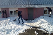 С наступлением весны добавляется и забот у хороших хозяев. Солнце растопило снег на дорогах, но неприглядным зрелищем остаются снежные кучи на обочинах дорожек. На ворошение снега на территории школы вышли старшеклассники.