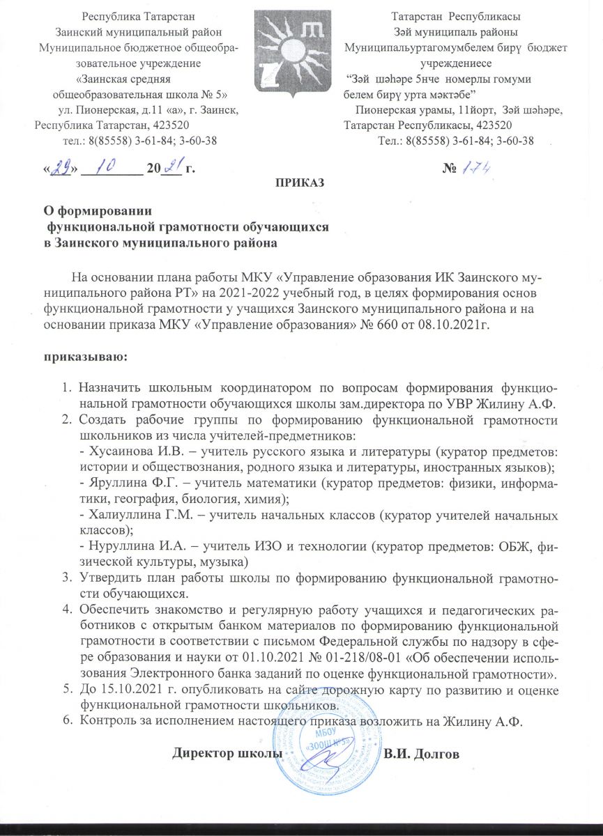 Приказ по школе О формировании функциональной грамотности обучающихся