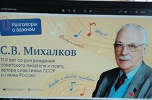 13 марта в школе прошли «Разговоры о важном». Тема занятия — «С.В. Михалков. 110 лет со дня рождения». Занятие содействовало формированию таких ценностей, как жизнь, достоинство, патриотизм, историческая память и преемственность поколений. Учащиеся узнали, что книги Сергея Владимировича известны многим поколениям, они – на все времена. Произведения этого писателя наполнены мягким юмором и поучительны, поэтому неудивительно, что они интересны и любимы всеми и в наши дни. Михалков работал в разных жанрах: писал пьесы для детских театров, сценарии для мультфильмов, сочинял стихи и басни. Занятия расширили знания обучающихся о творчестве С. В. Михалкова; познакомили с историей создания Государственного гимна СССР и Государственного гимна Российской Федерации.