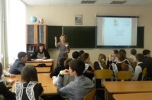 Сегодня в рамках профориентационной работы продолжаются встречи с представителями ВУЗов. В школе для учащихся 11-х классов всего города прошла встреча с представителями КХТИ.