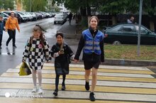 В рамках месячника безопасности школьный отряд ЮИД помогает учащимся начальной школы правильно перейти проезжую часть дороги, напоминает о правилах дорожного движения.
