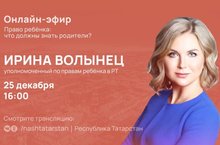 Право ребёнка: что должны знать родители? На эту тему 25 декабря, в 16:00 состоится прямой эфир программы #ТатарстанОнлайн с Уполномоченным по правам ребёнка в Татарстане Ириной Волынец.