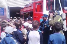 29 мая прошла встреча по пожарной безопасности. Встретив ребят, заместитель начальника части провел для них экскурсию по пожарному депо. Он поведал малышам все «секреты» быта пожарных, продемонстрировал «начинку» спецтехники. Они заглянули в учебный класс, караульное и другие служебные помещения части. На посту газодымозащитной службы ребятам показали дыхательные аппараты на сжатом воздухе, которые пожарные используют для работы в задымленной среде. В гараже школьники с интересом заглядывали в каждый отсек пожарного автомобиля, с удовольствием примерили на себя пожарное оснащение и посидели на месте боевого расчета.