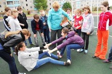 В пришкольном лагере проводится много спортивных мероприятий.